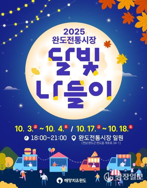 광장일보 주재영 기자 | 완도군은 10월 첫째, 셋째 주 금·토요일 오후 6시부터 9시까지 총 4회에 걸쳐 완도전통시장에서 ‘달빛 나들이’ 행사를 개최한다.