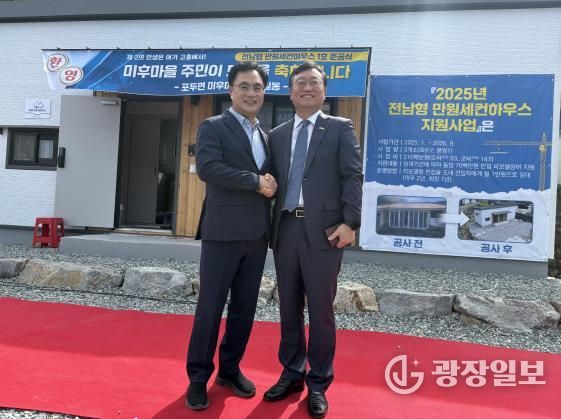 광장일보 주재영 기자 | 전라남도의회 안전건설소방위원회 송형곤 의원(더불어민주당, 고흥1)은 지난 9월 29일, 고흥군 포두면 미후마을에서 열린 ‘전남형 만원 세컨하우스’ 1호 준공식에 참석해 지역 주민과 함께 첫 결실을 축하했다.
