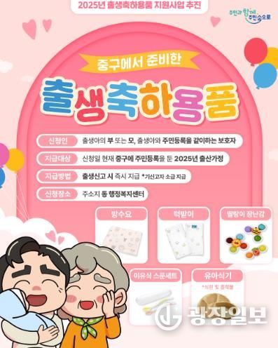 지원 대상은 중구에 주민등록을 둔 출산가정이며, 타 지역에서 출산 후 중구로 전입한 가정도 포함된다.