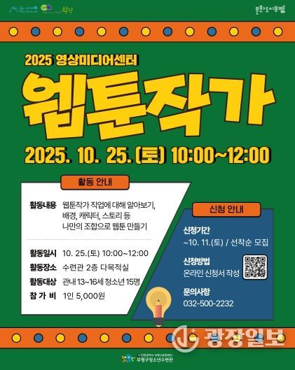 광장일보 주재영 기자 | 부평구 청소년수련관은 오는 10월 11일까지 영상미디어센터 10월 일일특강 ‘웹툰작가 직업 특강’의 참가자를 모집한다.