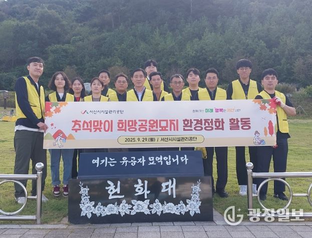 광장일보 주재영 기자 | 서산시시설관리공단은 민족 최대 명절 추석을 앞두고 성묘객들에게 깨끗하고 쾌적한 추모 환경을 제공하기 위해 9월 29일 서산시 희망공원묘지에서 환경정화 활동을 실시했다.