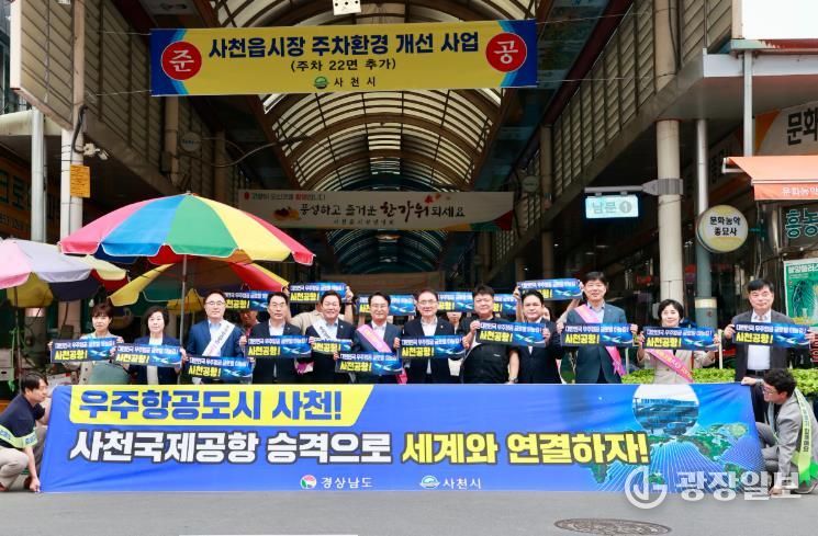이번 캠페인에는 박완수 경남도지사를 비롯해 박동식 사천시장, 지역 상인회 관계자 등이 함께 참여해 사천국제공항의 조속한 국제공항 승격과 확장을 촉구하는 목소리를 모았다.
