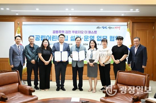 광장일보 주재영 기자 | 김천시는 9월 29일 2층 접견실에서 공동주택 김천 푸르지오 더 퍼스트 어린이집 입주자대표회의(회장 유민상)와 국공립어린이집 설치‧운영을 위한 업무협약을 체결했다.