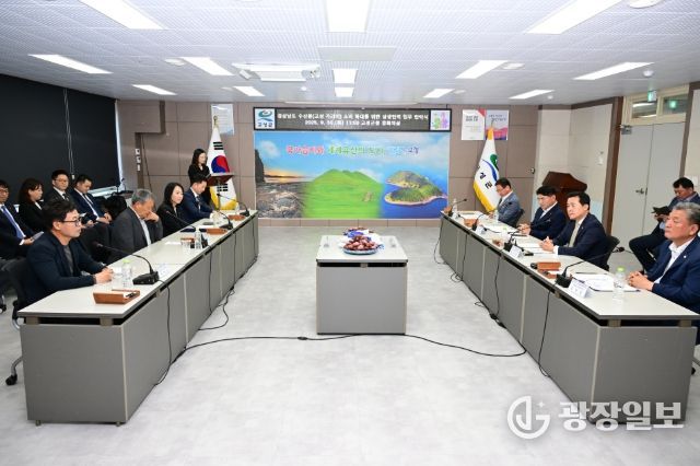 광장일보 주재영 기자 | 경상남도의회는 30일 고성군청 중회의실에서 경상남도의회, 경상남도, 고성군, 고성군의회, CJ푸드빌㈜과 함께 고성 가리비를 중심으로 한 경남 수산물 소비 확대와 지역 경제 활성화를 위한 상생협약을 체결했다.