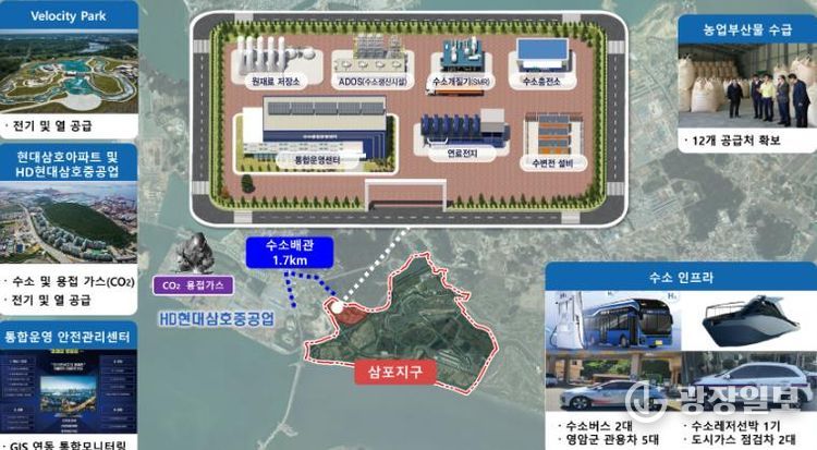 주요 사업으로는 왕겨·볏짚 등 농업부산물을 활용해 연간 730톤의 청정수소를 생산하고, 1.7km 수소 배관을 구축하며 인근 아파트와 삼포지구 숙박시설에 연료전지 발전설비를 설치한다.