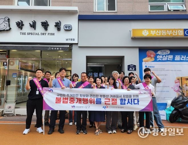 광장일보 주재영 기자 | 부산 남구는 지난 9월 30일, 한국공인중개사협회 부산광역시 남부지회와 함께 「부동산 불법 중개행위 근절 캠페인」을 실시했다. 이번 캠페인은 개청 50주년을 기념해 구민의 안전한 부동산 계약을 지원하고, 불법 중개행위를 예방하기 위해 마련됐다.