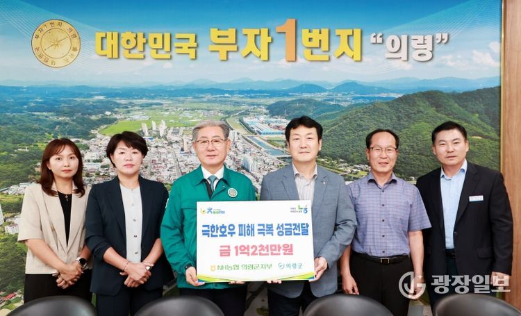 광장일보 주재영 기자 | 의령군은 최근 집중호우로 큰 피해를 입은 지역의 복구를 돕기 위해 NH농협 의령군지부가 성금 1억2천만원을 기탁했다고 1일 밝혔다.