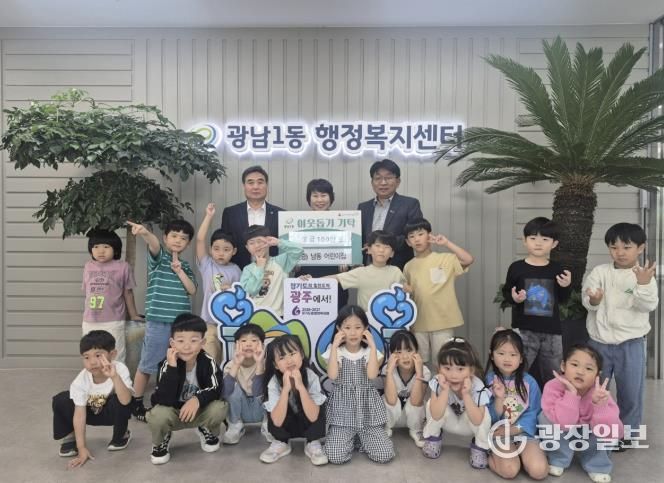광장일보 주재영 기자 | 남동어린이집 원아들과 교직원 20여 명은 지난달 29일 광주시 광남1동 행정복지센터를 방문해 어려운 이웃을 돕기 위한 성금 100만 원을 기탁했다.