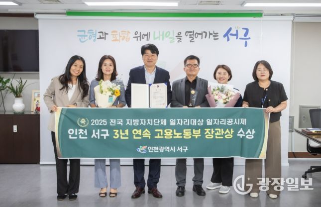 광장일보 주재영 기자 | 인천 서구가 고용노동부 ‘전국 지방자치단체 일자리 평가’에서 3년 연속 고용노동부 장관상에 선정됐다.