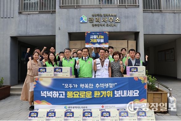 광장일보 주재영 기자 | 광주도시공사(사장 김승남)는 추석 명절을 맞아 지난 29일 한국적십자사 광주전남지사와 함께‘추석맞이 노사공동 사랑의 선물 전달 행사’를 진행했다고 밝혔다.