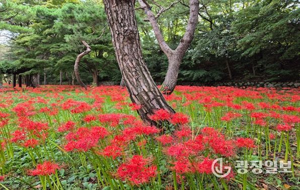 호수 주변 화단에는 꽃무릇이 절정을 이루고, 어울정원에는 코스모스와 백일홍이 활짝 피어 가을 분위기를 한층 높이고 있다.