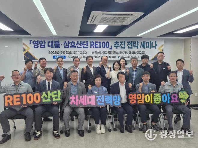 광장일보 주재영 기자 | 영암군이 9/30일 한국산업단지공단 전남서부지사에서 ‘대불·삼호산단 RE100 추진 전략 세미나’을 개최했다.