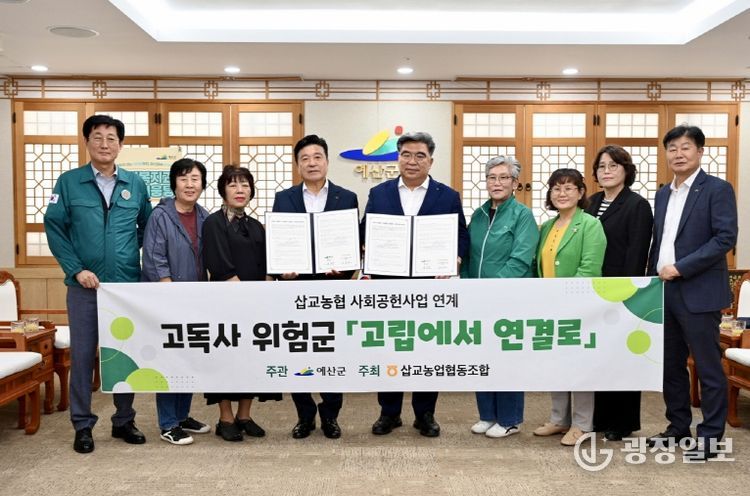 광장일보 주재영 기자 | 예산군은 삽교농협(김종래 조합장)과 저소득 고독사 고위험 가구를 위한 ‘고립에서 연결로 시범사업’ 업무협약을 체결했다고 1일 밝혔다.