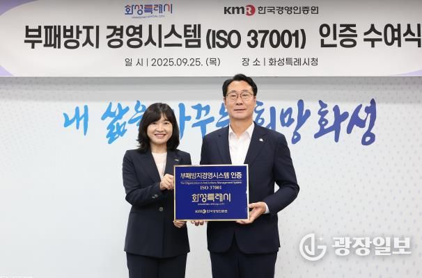 광장일보 나병석 기자 | 화성특례시가 국제표준화기구(ISO)에서 제정한 부패방지경영시스템 (ISO37001) 인증을 획득했다.