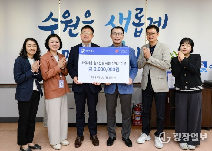 광장일보 나학천 기자 | 아경장학재단이 “취약계층 중·고등학생에게 전달해 달라”며 수원특례시에 300만 원을 기탁했다.