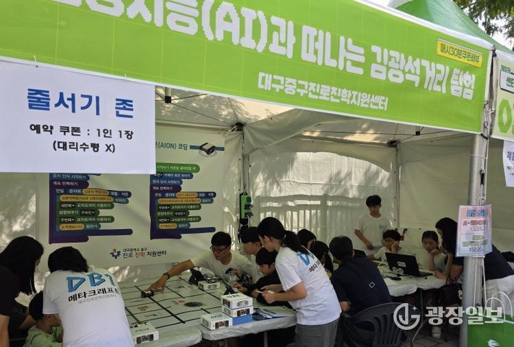 광장일보 주재영 기자 | 대구 중구진로진학지원센터(센터장 김남탁)는 대봉1동 창의융합 학생동아리와 함께 지난달 27일부터 이틀간 삼성창조캠퍼스에서 열린 ‘2025 대구메이커페스타’에 참가해 김광석거리 홍보 프로젝트 ‘DB1 메타크래프트 체험부스’를 운영했다.