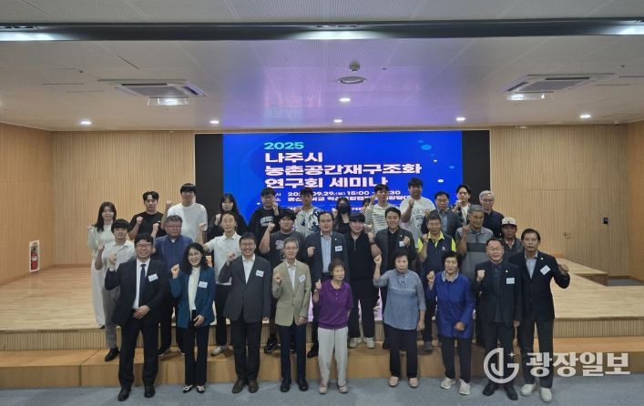 광장일보 주재영 기자 | 나주시의회 의원연구단체 ‘농촌공간 재구조화 과정 연구회’(대표의원 김강정)가 주최한 세미나가 지난 29일 빛가람동 동신대한방병원에서 읍면동 주민들과 유관기관 단체장, 언론인을 비롯한 관계자 등이 참석한 가운데 개최됐다.
