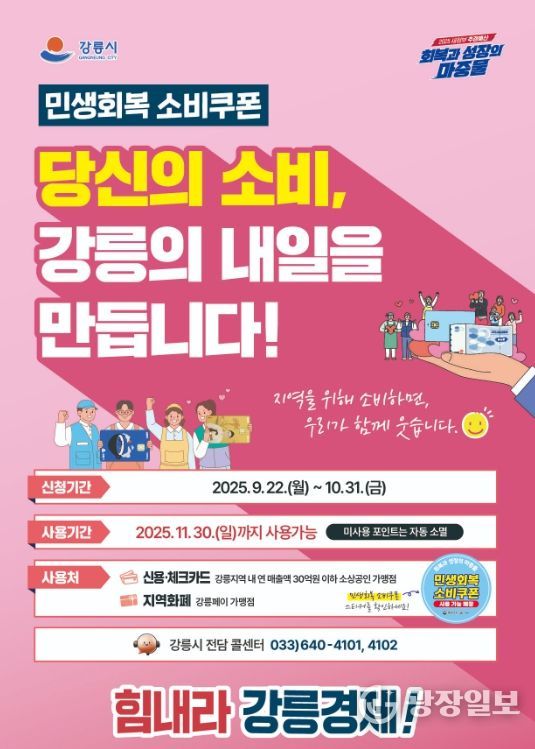 광장일보 이현나 기자 | 강릉시 민생회복 소비쿠폰 2차 신청·지급률이 85%로 순항 중인 가운데, 시는 1일부터 10일까지 민생회복 소비쿠폰 2차 소비촉진주간을 운영한다.
