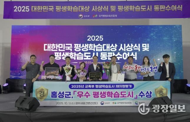 광장일보 주재영 기자 | 홍성군은 지난 1일 정부세종컨벤션센터에서 열린 ‘2025 대한민국 평생학습대상 및 평생학습도시 동판수여식’에서 교육부장관 기관표창을 수상하며, 전국 평생학습 활성화를 선도하는 도시로 위상을 높였다.
