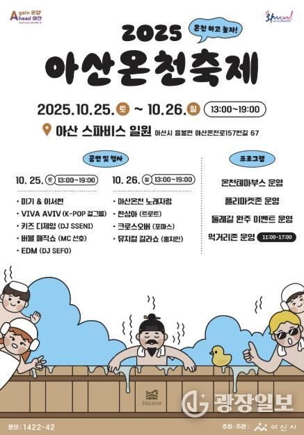 광장일보 주재영 기자 | 아산시가 주최하는 ‘2025 아산온천축제’가 오는 10월 25일부터, 26일까지 이틀간 아산스파비스 일원에서 열린다.