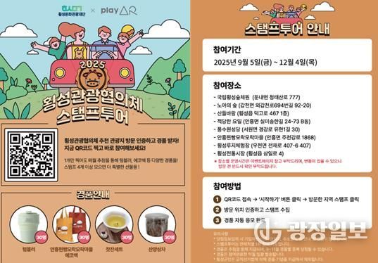 횡성 지역 관광협의체와 함께 진행하는 이번 행사는 횡성군 관광 활성화와 상생을 위해 기획됐으며, 횡성관광협의체 추천 관광지 4곳과 횡성군 관광지 4곳을 방문하고 인증하는 방식으로 진행된다.