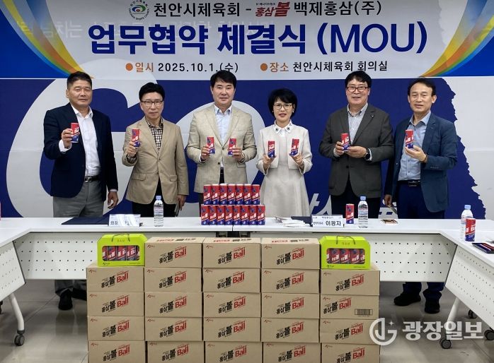 광장일보 주재영 기자 | 천안시체육회는 지난 1일 백제홍삼㈜와 체육인 건강증진을 위해 업무협약을 체결했다고 밝혔다.