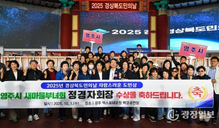 광장일보 주재영 기자 | 영주시는 10월 1일 경주 엑스포대공원 백결공연장에서 열린 ‘2025년 도민의 날 기념식’에서 정경자 영주시 새마을부녀회장이 ‘영주시 자랑스러운 도민상’을 수상했다고 밝혔다.