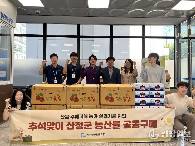 광장일보 주재영 기자 | 대구공공시설관리공단은 2025년 산불과 수해로 큰 피해를 입은 경남 산청군 농가를 지원하기 위해 추석을 앞두고 임직원 농산물 공동구매를 진행했다.