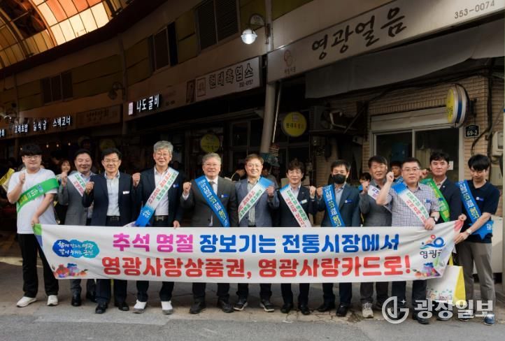 이번 행사에서는 영광군수, 국회의원, 도의원, 군의원, 공직자, 유관기관 등 300여 명이 참여해 영광사랑상품권으로 제수용품과 농·수산물 등을 구입하며 지역경제 살리기에 힘을 보탰다.