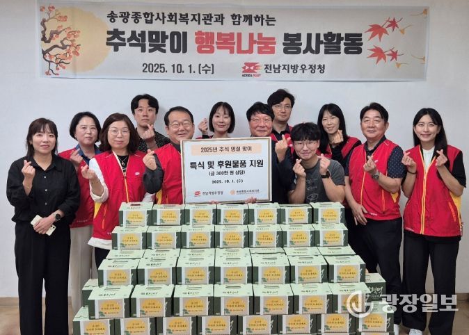 광장일보 주재영 기자 | 전남지방우정청은 지난 1일 추석 명절을 맞아 광산구 소재‘송광종합사회복지관’을 방문하여 배식 봉사활동 및 후원물품 전달행사를 진행했다고 밝혔다.