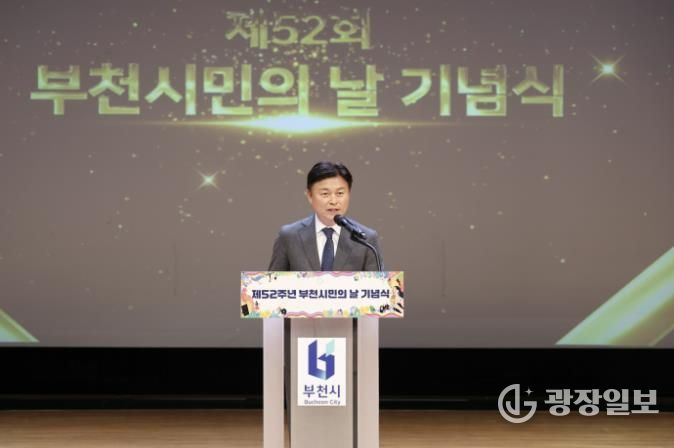 조용익 부천시장은 기념사를 통해 “부천은 시민의 땀과 열정, 헌신으로 공업도시에서 문화도시를 거쳐, 자족 기능을 갖춘 첨단과학 교육도시로 도약을 준비하고 있다”며 “앞으로도 ‘부천 3·4·5 프로젝트’를 성공적으로 추진해 경제도약과 도시공간 재구성, 균형발전을 이루고, 시정에 시민의 뜻을 담기 위해 시민의 삶에 더 깊이 다가가겠다”고 말했다.