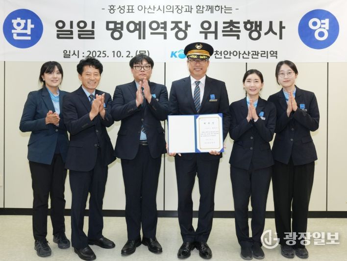 광장일보 주재영 기자 | 아산시의회 홍성표 의장은 10월 2일 오후 1시 온양온천역에서 ‘일일 명예역장’으로 위촉됐다.