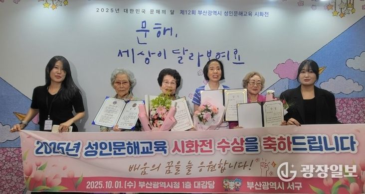 광장일보 주재영 기자 | 부산 서구는 지난 1일 열린‘2025년 제12회 부산광역시 성인문해교육 시화전’에서 관내 학습자 5명이 최우수상과 특별상 등을 수상했다고 밝혔다.