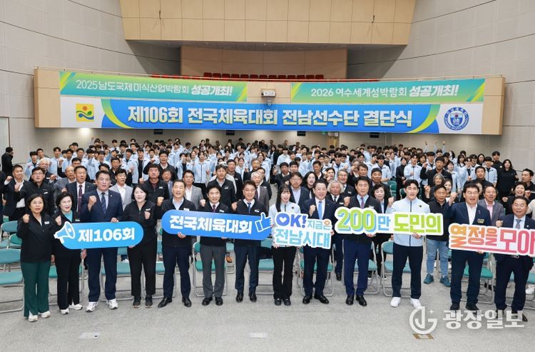 광장일보 주재영 기자 | 김태균 전남도의장은 10월 2일 전남도청 왕인실에서 개최된 ‘제106회 전국체전 참가 전남선수단 결단식’에 참석해 출전 선수와 임원들을 격려․응원했다.