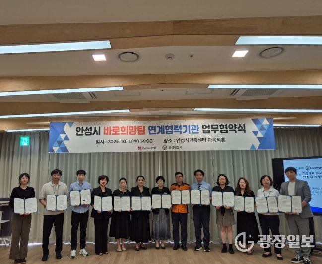 광장일보 주재영 기자 | 안성시는 지난 10월 1일 안성시가족센터 다목적홀에서 가정폭력․성폭력 등 112신고 피해자에 대한 ‘원스톱 통합지원’을 위하여 업무협약(MOU)을 체결했다.