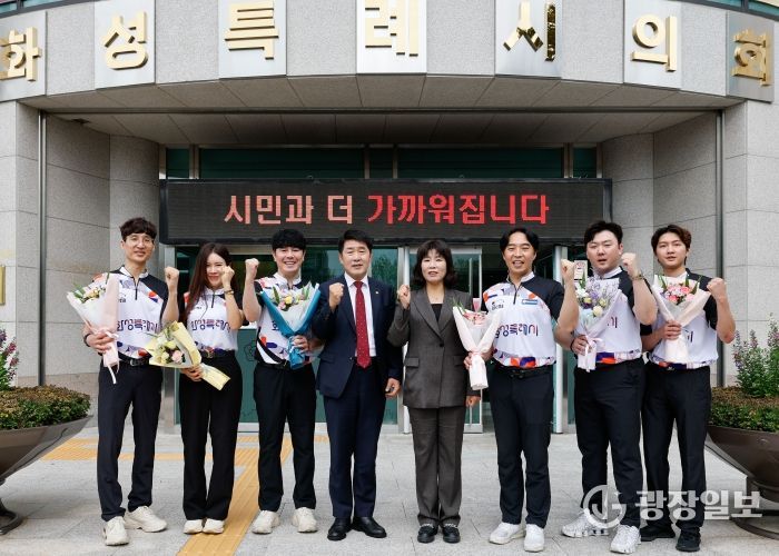 광장일보 나병석 기자 | 화성특례시의회는 2일, 지난 9월 개최된 ‘2025 동트는 동해컵 프로볼링대회’에서 개인전과 단체전을 석권한 팀 MK 글로리아 선수단을 초청해 간담회를 갖고 표창을 수여했다.