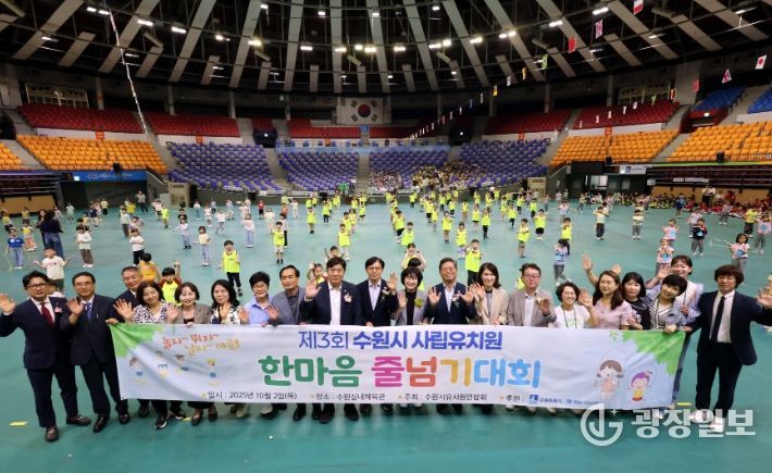 광장일보 나학천 기자 | 수원특례시는 2일 수원종합운동장 수원체육관에서 ‘제3회 수원시 사립유치원 한마음 줄넘기대회’를 열었다.