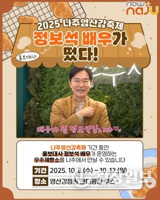 나주시는 성공적인 축제 개최를 위해 반남면 출신 배우 정보석 씨를 ‘2025 나주영산강축제’ 홍보대사로 위촉했다고 2일 밝혔다.