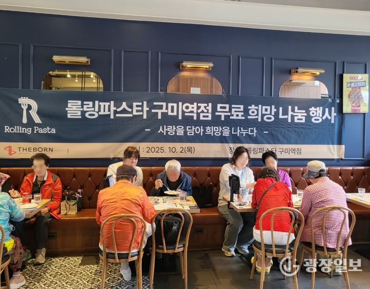 광장일보 주재영 기자 | 롤링파스타 구미역점과 료혼구미특별관(대표 김경호)은 2일, 구미지역 아동과 어르신 250여 명을 식당으로 초대해 정성 어린 식사를 대접했다. 이번 행사는 관내 재가노인통합지원센터와 지역아동센터의 협조로 진행됐다.