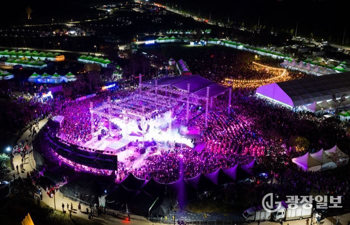 이어 드론과 불꽃쇼는 영산강정원의 가을 밤하늘을 수놓았고 송가인, 김용빈의 축하공연은 그야말로 대미를 장식하며 개막식 분위기를 최고조로 끌어올렸다.