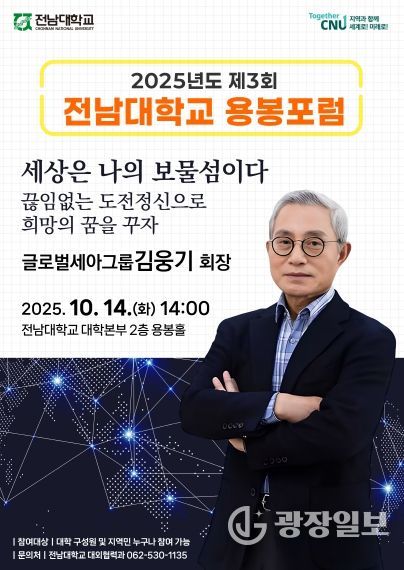 이번 강연은 전남대 학생과 교직원은 물론, 지역민 누구나 참여할 수 있는 공개 포럼 형식으로 진행된다.