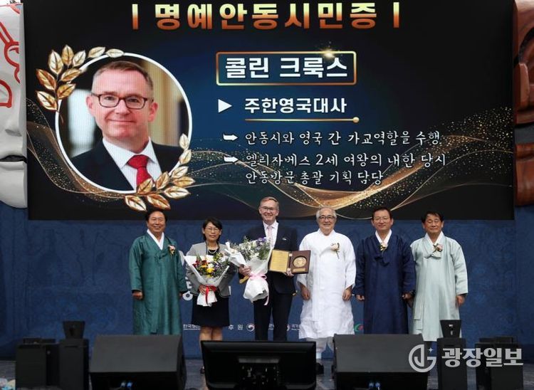 광장일보 주재영 기자 | 안동시는 지난 10월 3일 열린 제23회 ‘안동의 날’ 기념식에서 콜린 제임스 크룩스(Colin James Crooks) 주한영국대사에게 명예안동시민증을 수여했다고 밝혔다.