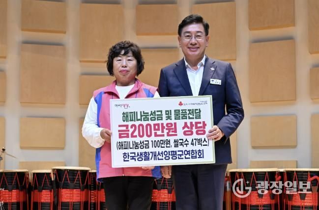 광장일보 주재영 기자 | 한국생활개선양평군연합회는 지난 9월 30일부터 10월 1일까지 강릉 한국여성수련원에서 열린 ‘2025년 생활개선양평군연합회 한마음대회’에서 쌀국수 47박스와 현금 100만 원, 총 200만 원 상당의 해피나눔성금을 기탁했다고 밝혔다.
