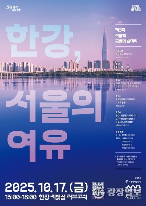 광장일보 주리아 기자 | 서울역사편찬원은 10월 17일 오후 1시, 한강 세빛섬에서 제3회 서울학 공동학술대회 '한강, 서울의 여유'를 개최한다. 이번 학술대회는 조선시대부터 현대에 이르기까지 한강과 함께 변화해 온 서울사람의 일상과 여가 그리고 도시문화의 흐름을 폭넓게 조명한다.
