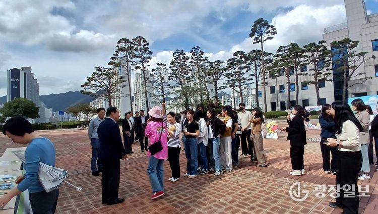 광장일보 주재영 기자 | 양산시는 17일 오전 11시부터 오후 2시까지 양산문화예술회관 앞 광장에서 시청과 시의회 전 직원을 대상으로 ‘양산프렌즈 1일 홍보대사 캠페인’을 진행했다.