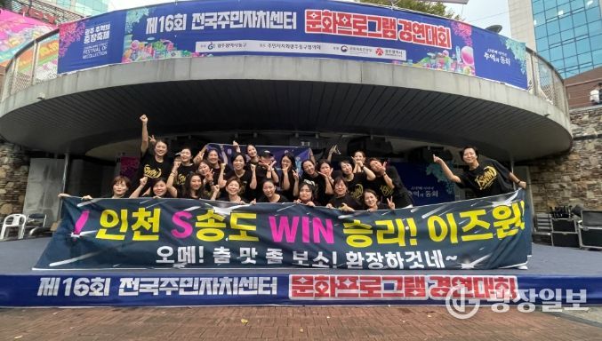 광장일보 주재영 기자 | 연수구 송도3동 주민자치센터 다이어트댄스 프로그램 수강생들로 구성된 ‘이즈윈(ISWIN)’ 팀이 ‘제16회 전국 주민자치센터 문화프로그램 경연대회’에서 장려상(주민자치회 광주광역시 동구협의회장상)을 수상하는 쾌거를 이뤘다.