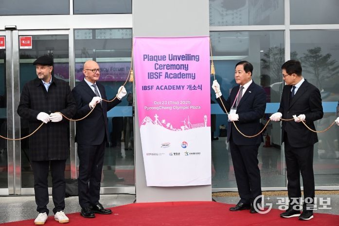 광장일보 이현나 기자 | 2025 세계올림픽도시연맹 총회가 한창 진행 중인 평창올림픽플라자에서는 오늘(10월 23일) 오후, 이보 페리아니(Ivo Ferriani) IBSF(국제봅슬레이스켈레톤연맹) 회장과 전찬민 IBSF 부회장 겸 KBSF(대한봅슬레이스켈레톤연맹) 회장, 최성희 문체부 체육협력관, 심재국 평창군수 그리고 원윤종 등 국내외 썰매 종목 관계자와 선수들이 참석한 가운데 'IBSF 아카데미 평창사무소 개소식'이 열렸다.