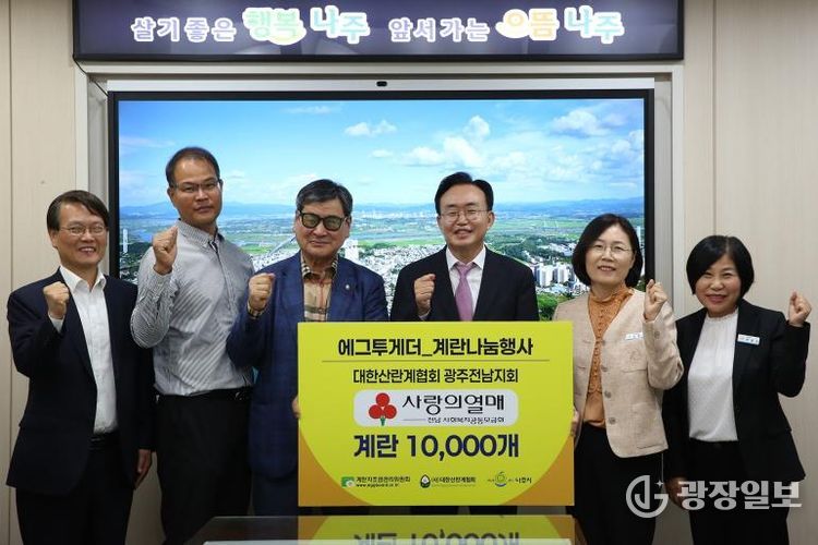 한편 나주시가 기탁받은 계란은 지역아동센터와 노인복지관 등 관내 사회복지시설에 전달될 예정이다.