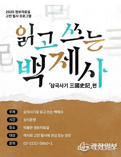 김지연 서울시 한성백제박물관장은 “시민들이 자율적으로 고전 필사에 참여하며 손끝으로 백제의 역사를 느끼고, 문화적 힐링을 경험하는 소중한 시간이 되길 기대한다”라고 전했다.