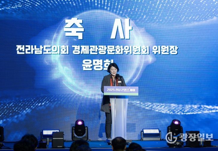 광장일보 주재영 기자 | 전라남도의회 경제관광문화위원회 윤명희 위원장(더불어민주당, 장흥2)은 지난 10월 31일 장흥에서 개최된 2025 전남 콘텐츠 페어에 참석했다. 이날 윤명희 위원장은 7개의 콘텐츠 전시존을 둘러보며 미디어아트, 게임, 웹툰 등의 다양한 프로그램을 체험했다.